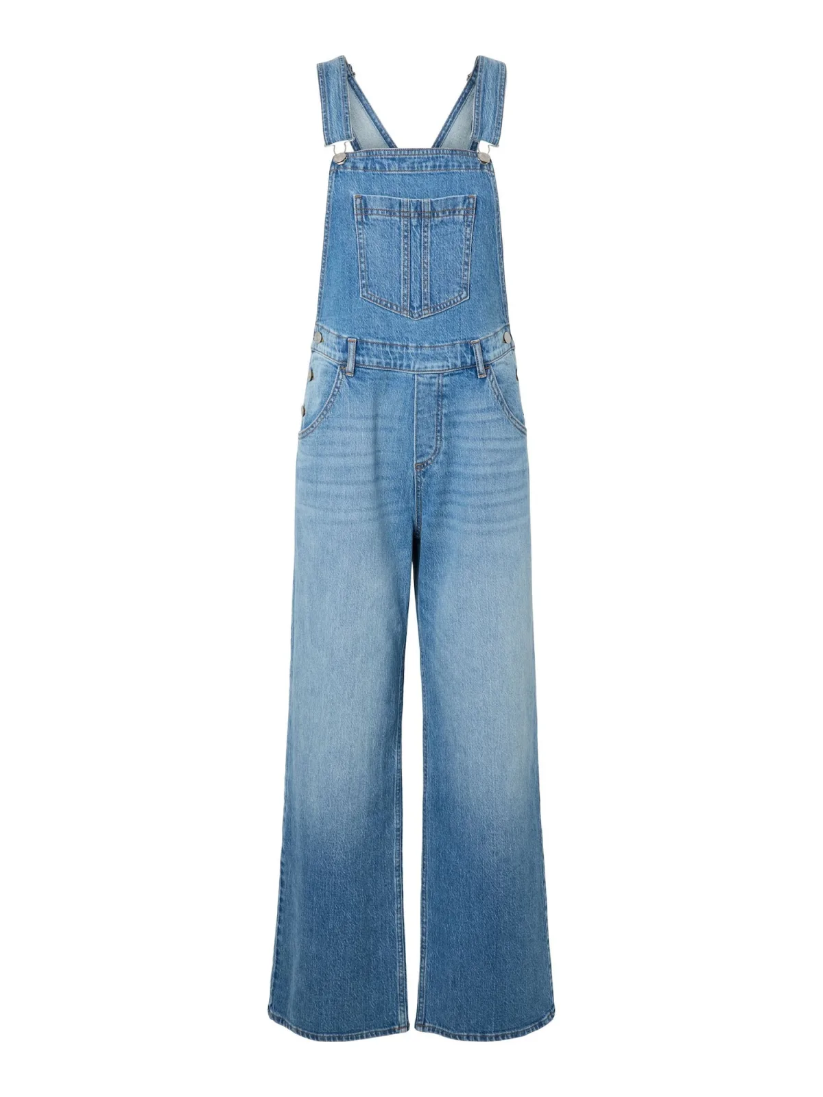 Design: Borstzak, Zakken aan de zijkant; Type sluiting: Knoopsluiting; Materiaal: Denim; Motief: Effen; Extra’s: Verstelbare bandjes; Wassing: Blauw denim; Lengte: Lang/maxi; Pasvorm: Loosefit; Taillehoogte: Mid waist