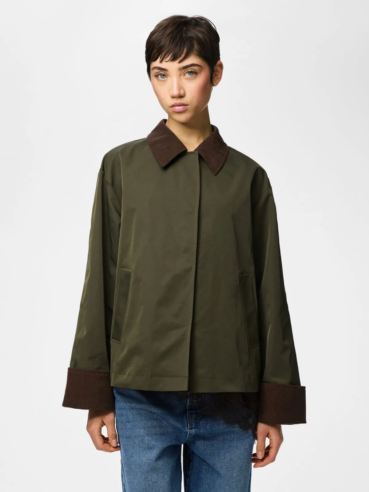 Design: Zakken aan de zijkant; Type sluiting: Drukknoop; Voering: Licht gevoerd; Materiaal: Gerecycled materiaal; Extra's: Op staal naden; Pasvorm: Losse pasvorm
