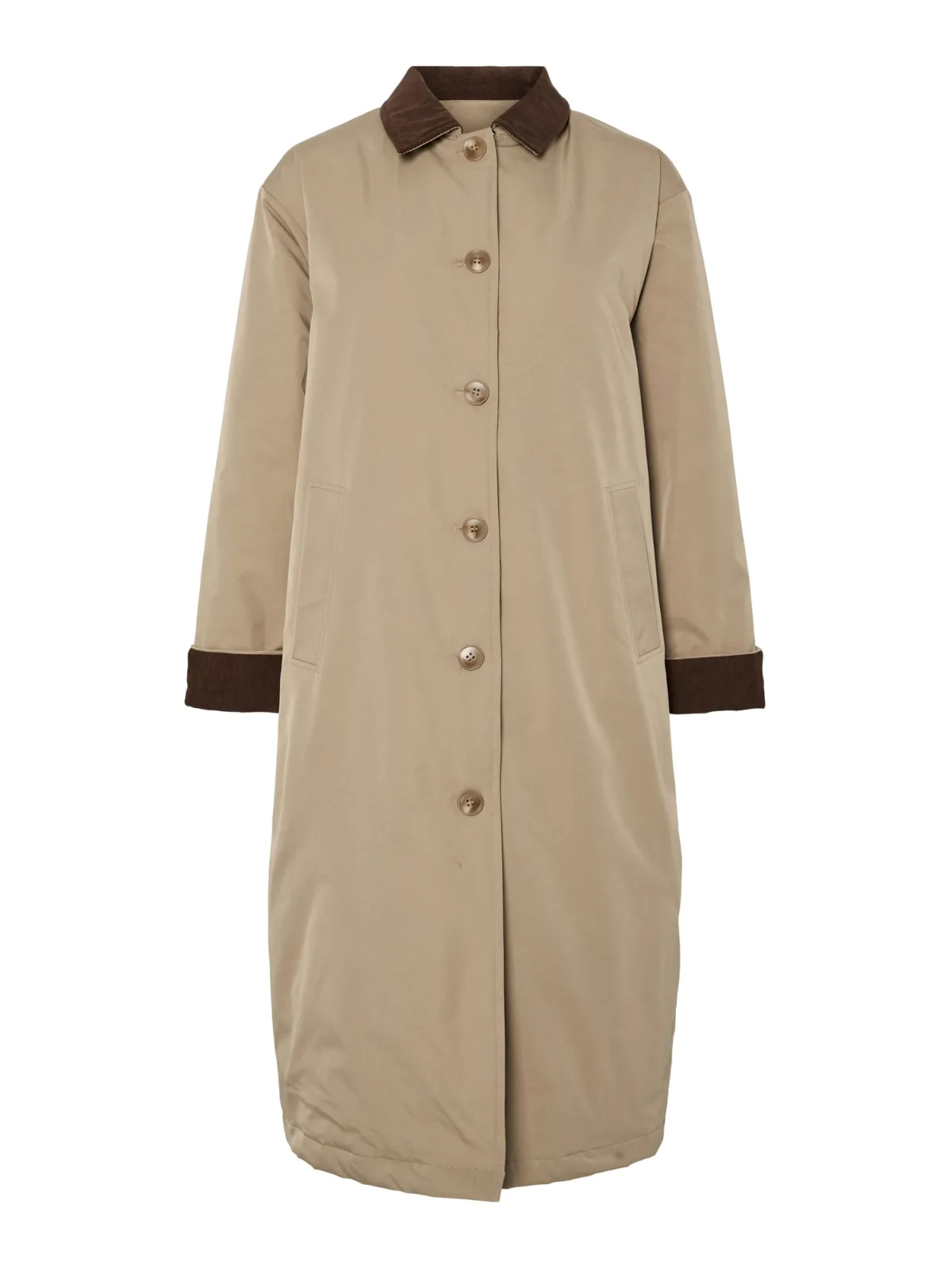 Type mantel: Klassieke mantel; Design: Knop placket, Zakken aan de zijkant; Type sluiting: Knoopsluiting; Voering: Licht gevoerd; Materiaal: Gerecycled materiaal; Motief: Effen; Extra's: Op staal naden, Gladde stof; Pasvorm: Normale pasvorm; Lengte: Normale lengte