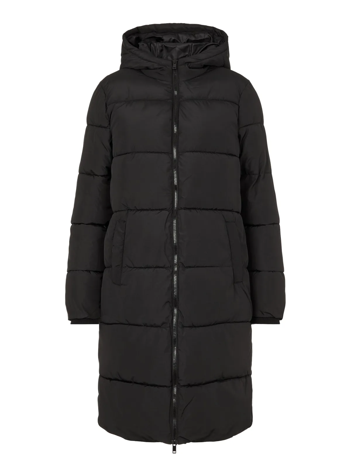 Gewatteerde lange damesjas van Pieces;Model 'Bee';Look: effen;Pasvorm: Regular fit;Kraagmodel: Kraagmodel: ;Sluiting: Tweewegritssluiting;Lengte: Lang;Mouwvorm: lange mouwen;Mouwboord: Binnenmanchetten;Zakken: steekzakken opzij;Totale lengte bij maat S: 96 cm;Borstomvang bij maat S: 52 cm;Schouderbreedte bij maat S: 41 cm;Mouwlengte bij maat S: 64 cm