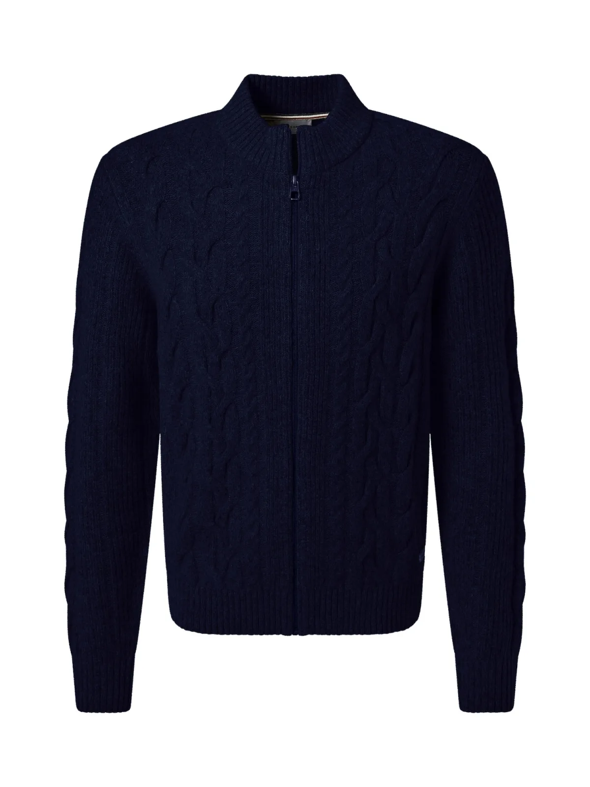 Design: Geribbelde kraag, Rechte zoom, Geribd ceintuurtje, Vlecht brei; Type sluiting: Ritssluiting; Materiaal: Knitwear; Halstype: Opstaande kraag; Motief: Effen; Extra's: Label plaatje, Met textuur; Pasvorm: Normale pasvorm; Armlengte: Lange mouw; Lengte: Normale lengte