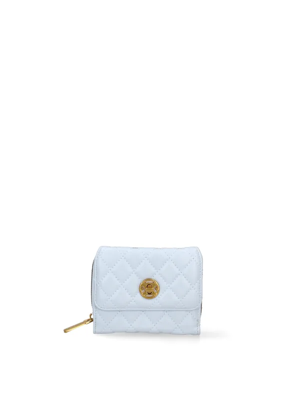 Damesportemonnee met draaisluiting. kaarthouder, bankbiljethouder en munthouder binnenzakken. één achterkant met externe zakken met ritssluiting. ontbrekende schouderband. ontbrekend handvat. een binnencompartiment. extern materiaal. 100% polyester binnenkant. Afmetingen: 13x10x4 cm. Modeproduct