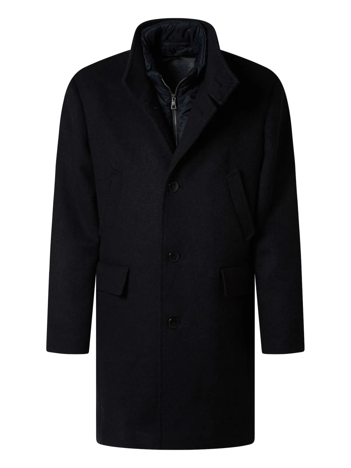 Type mantel: Klassieke mantel; Design: Gevoerde zoom/rand, Opzet-/flapzak, Knop sluiting; Type sluiting: Knoopsluiting; Voering: Licht gevoerd; Materiaal: Wol; Motief: Effen; Extra's: Op staal naden; Pasvorm: Normale pasvorm; Lengte: Normale lengte