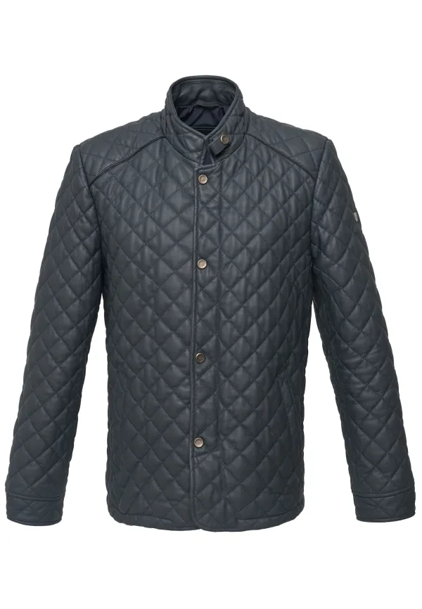 Design: Paspelzak; Type sluiting: Knoopsluiting; Type jas: Gewatteerde jas; Voering: Niet gevoerd; Materiaal: Leer; Motief: Effen; Pasvorm: Normale pasvorm