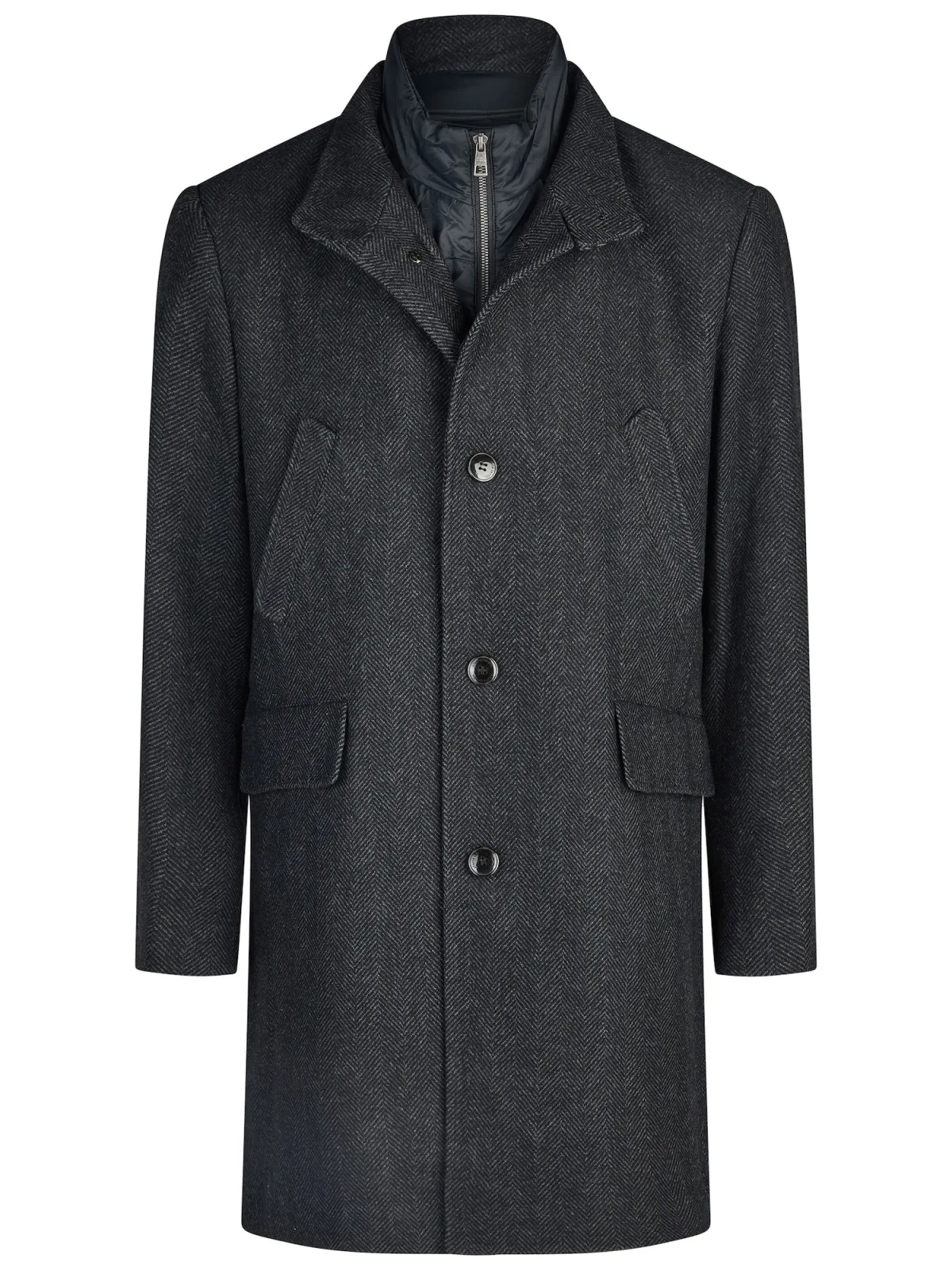 Type mantel: Klassieke mantel; Design: Knop placket, Zakken aan de zijkant; Type sluiting: Knoopsluiting; Voering: Licht gevoerd; Motief: Visgraat; Pasvorm: Normale pasvorm; Lengte: Normale lengte