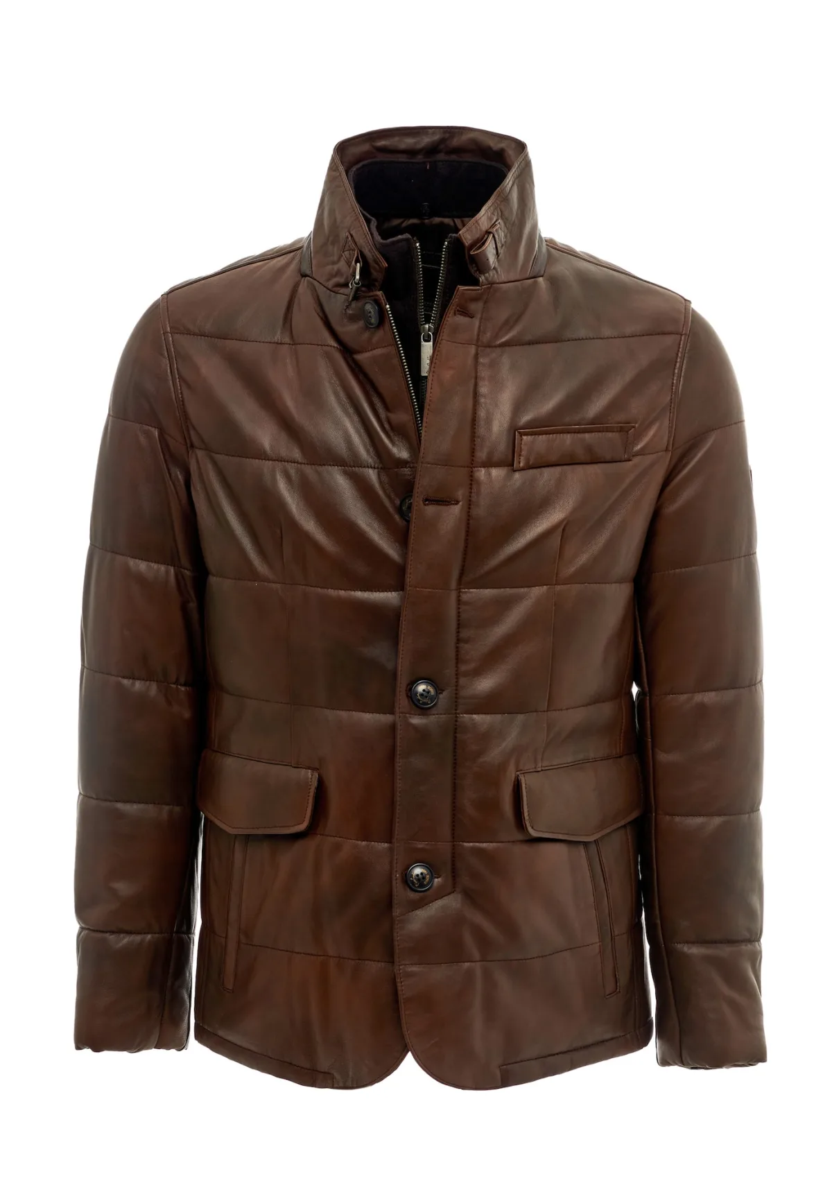 Design: 1-knoops manchetten, Paspelzak, Opzet-/flapzak; Type sluiting: Ritssluiting; Type jas: Gewatteerde jas; Voering: Warm gevoerd; Materiaal: Leer; Motief: Effen; Pasvorm: Normale pasvorm