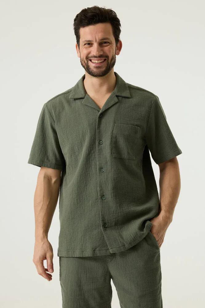 Overhemd met een allover print en borstzakje. Dit overhemd heeft een knoopsluiting, korte mouwen en een regular fit. Dit item is gemaakt van 100% katoen. Better Cotton is een initiatief dat zich wereldwijd inzet voor betere omstandigheden in de katoenindustrie.