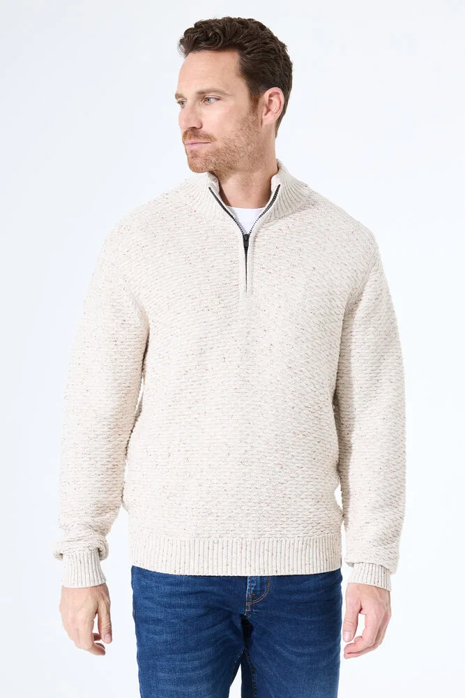 Gebreide trui met opstaande kraag. Deze trui heeft lange mouwen, een ritssluiting in de hals en een regular fit, waardoor hij perfect is voor zowel casual als iets formelere gelegenheden. Deze trui is gemaakt van 100% katoen. Better Cotton is een initiatief dat zich wereldwijd inzet voor betere omstandigheden in de katoenindustrie.