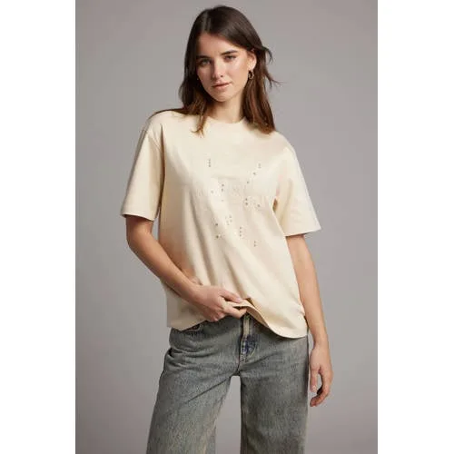 Pink Noir T-shirt crème met parels
