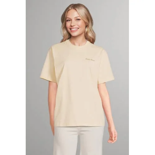 Voor dagelijkse outfits die net wat meer zeggen, is dit beige dames T-shirt van 100% katoen een praktische basis. Het shirt heeft een rustige voorkant en een backprint met tekst op de achterkant, waardoor het van voren eenvoudig oogt en toch iets opvallends heeft zodra je je omdraait. De zachte stof en rechte mouwen zorgen voor een comfortabel gevoel op warme dagen in de zomer.Kenmerken van dit T-shirt Gemaakt van 100% katoen, voelt zacht en soepel aan op de huid Beige kleur die goed te combineren is met jeans, shorts of een rok Korte, rechte mouwen voor een luchtig gevoel Ronde hals die aansluit zonder te strak te zitten Backprint met tekst op de achterkant voor een speels detail Geen borstzak, waardoor de print en de kleur centraal staan Geschikt voor standaardmaten, 1 T-shirt per verpakkingElke dag draagbaarDit T-shirt komt uit de 'Daily' collectie en is bedoeld voor alledaags gebruik. Ideaal voor een zomerse dag met sneakers en een korte broek, maar ook geschikt onder een losvallend jasje op koelere momenten.Pink Noir stijlPink Noir richt zich op eigentijdse damesmode met aandacht voor detail. De collectie combineert draagbare basics met subtiele accenten, zoals de backprint bij dit T-shirt. Zo kies je voor kleding met een comfortabele pasvorm en een verzorgde afwerking.Een praktische basic met een backprint op de achterkant waarmee je eenvoudig je dagelijkse look compleet maakt.