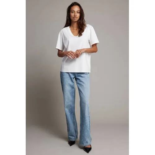 Het Pink Noir Serona T-shirt is een basic voor elke dag, met een vrouwelijke uitstraling door de subtiele V-hals. Gemaakt van zacht katoen met een toevoeging die het materiaal soepel laat vallen, voelt dit T-shirt licht aan op de huid. De rechte, korte mouwen en effen kleur maken het gemakkelijk te combineren met je favoriete jeans, rok of een luchtige broek.Details die je elke dag weer aantrekt Dames T-shirt met V-hals Korte, rechte mouwen voor een ontspannen pasvorm Zachte katoenen kwaliteit die zacht aanvoelt op de huid Effen ontwerp, geen borstzak voor een rustige look Basic, geschikt voor zowel casual als iets nettere outfitsSerona T-shirt in jouw dagelijkse routineDit T-shirt past gemakkelijk in elke garderobe. Praktisch op een drukke werkdag onder een blazer, en ook geschikt in het weekend op een short of een comfortabele jogger. De V-hals geeft vorm rondom de halslijn, terwijl de rechte mouwen zorgen voor bewegingsvrijheid, of je nu onderweg bent, thuiswerkt of met vrienden afspreekt.Pink Noir, toegankelijk en stijlvolPink Noir staat voor moderne, draagbare mode met een vrouwelijke touch. De ontwerpen zijn afgestemd op het dagelijks leven, met aandacht voor pasvorm en comfort. Zo kun je met één kledingstuk verschillende looks samenstellen, met een consistente kwaliteit en uitstraling.Een casual T-shirt dat je gemakkelijk draagt van ochtend tot avond.