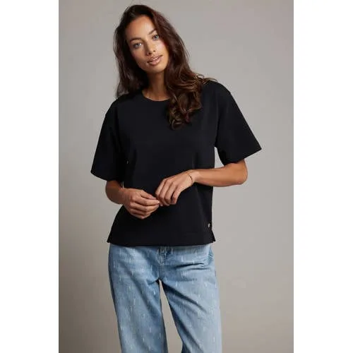 Het Pink Noir Iris T-shirt is een basic voor elke dag, met een vrouwelijke pasvorm en rustige uitstraling. Dit dames T-shirt heeft korte, rechte mouwen en een klassieke ronde hals, waardoor het makkelijk te combineren is met je favoriete jeans, rok of pantalon. De effen kleur geeft een rustige basis, terwijl de stof soepel langs het lichaam valt. Door het gebruik van modal voelt het materiaal zacht aan op de huid en zorgt de toevoeging van stretch voor extra bewegingsvrijheid.Details die je elke dag draagt Dames T-shirt met korte, rechte mouwen voor een rustige, verzorgde look Ronde hals die mooi aansluit zonder strak aan te voelen Effen uitvoering, ideaal als basis onder een vest, blazer of op zichzelf Zachte touch dankzij modal, geschikt om direct op de huid te dragen Stretch door spandex, waardoor het T-shirt soepel meebeweegt Geen borstzak, voor een rustige en nette uitstralingAlledaags gemak met een nette uitstralingDit T-shirt is geschikt voor allerlei momenten. Naar kantoor onder een blazer, in het weekend op een comfortabele jeans of tijdens een citytrip in combinatie met een luchtige broek. De rechte mouwen en ronde hals geven een verzorgde uitstraling, terwijl de soepele stof zorgt voor draagcomfort, de hele dag door.Pink Noir, eigentijds en toegankelijkPink Noir richt zich op moderne vrouwen die houden van draagbare mode met een stijlvolle twist. De collecties bestaan uit items die goed onderling te combineren zijn en passen bij een druk, dagelijks leven. Met dit Iris T-shirt laat Pink Noir zien dat comfortabele basics en een verzorgde uitstraling moeiteloos samen gaan.Een rustige, zachte basic waar je het hele seizoen op kunt vertrouwen.