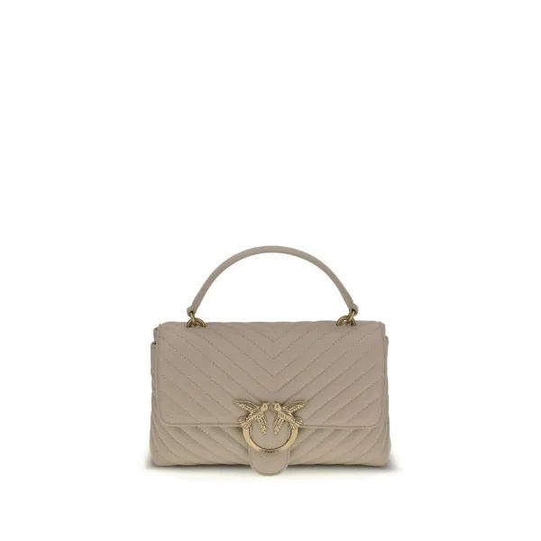 De Calfskin Love Lady Handtas van Pinko, met een magnetische sluiting aan de voorkant, iconisch verguld en reliëf Love Birds logo aan de voorkant, geborduurd en gewatteerd ontwerp, dubbele binnencompartimenten, schuifbare ketting schouderriem, platte stevige handgreep aan de bovenkant, binnenzak met rits, iconisch ton-sur-ton geborduurd merkmonogram op de achterkant. Seizoen: SS26 Afmetingen: 27x15x7 Samenstelling: 100% Kalfsleer Bos Taurus.