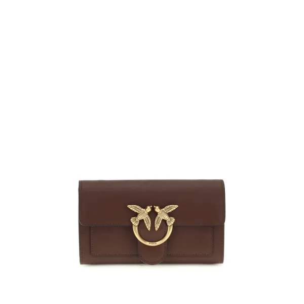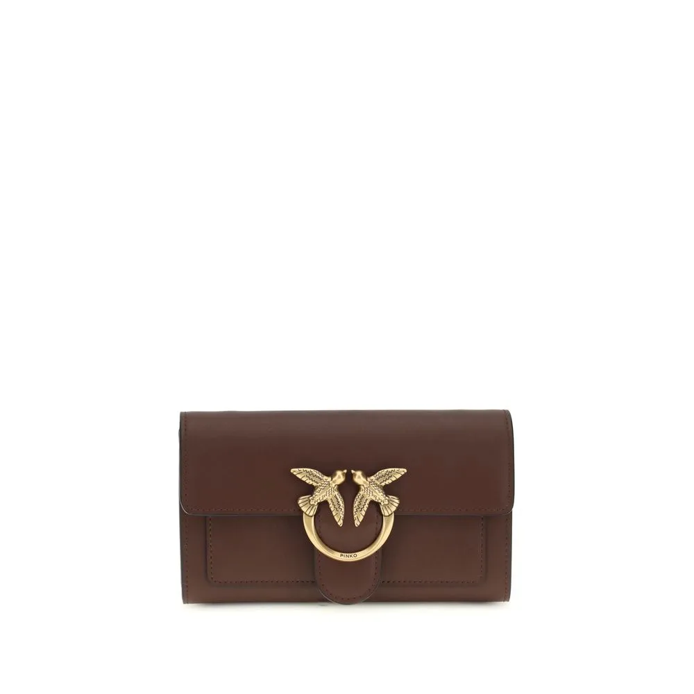 Kalfsleren One Love Wallet van Pinko, sluiting met magnetische knoop aan de voorkant, verstelbare en schuifbare schouderketting, iconische Love Birds-buckle geperst aan de voorkant, interne kaartsleuven, bankbiljetcompartiment, ritsvak voor munten met sluiting, interne ritszak, platte kaarthouder, iconisch merkmonogram geborduurd in ton-sur-ton op de achterkant. Seizoen: SS26 Afmeting: 19x9x2 Samenstelling: 100% Kalfsleer Bos Taurus