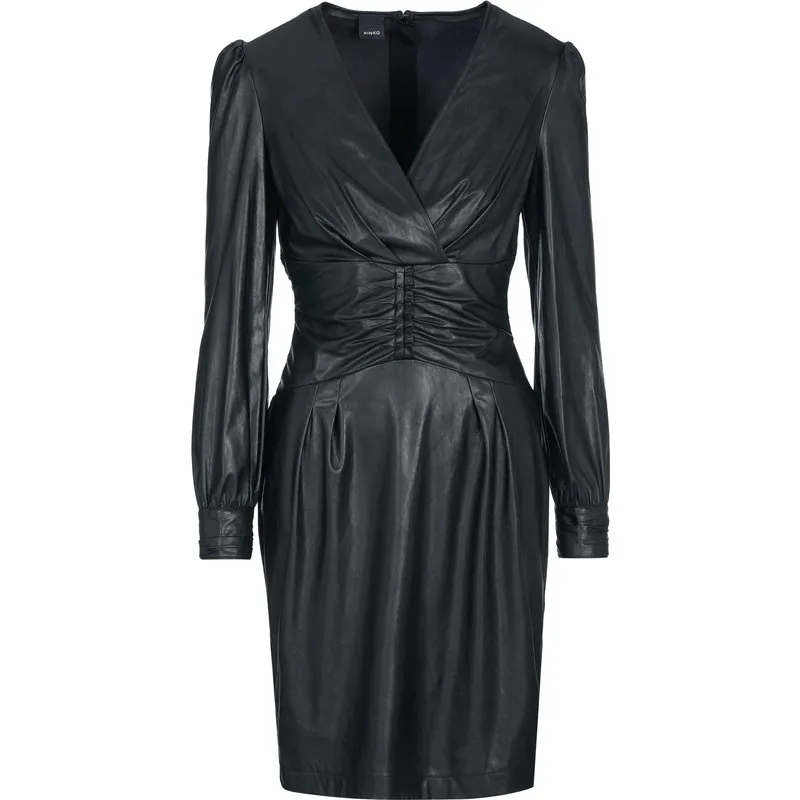 100% Polyester; Pinko-jurk; Model: 1G17Q4Y6BF Z99; Hoogwaardige afwerking; ritssluiting, haak; V-hals; lange mouw; ruches aan de mouwen; Pinko-logodetails