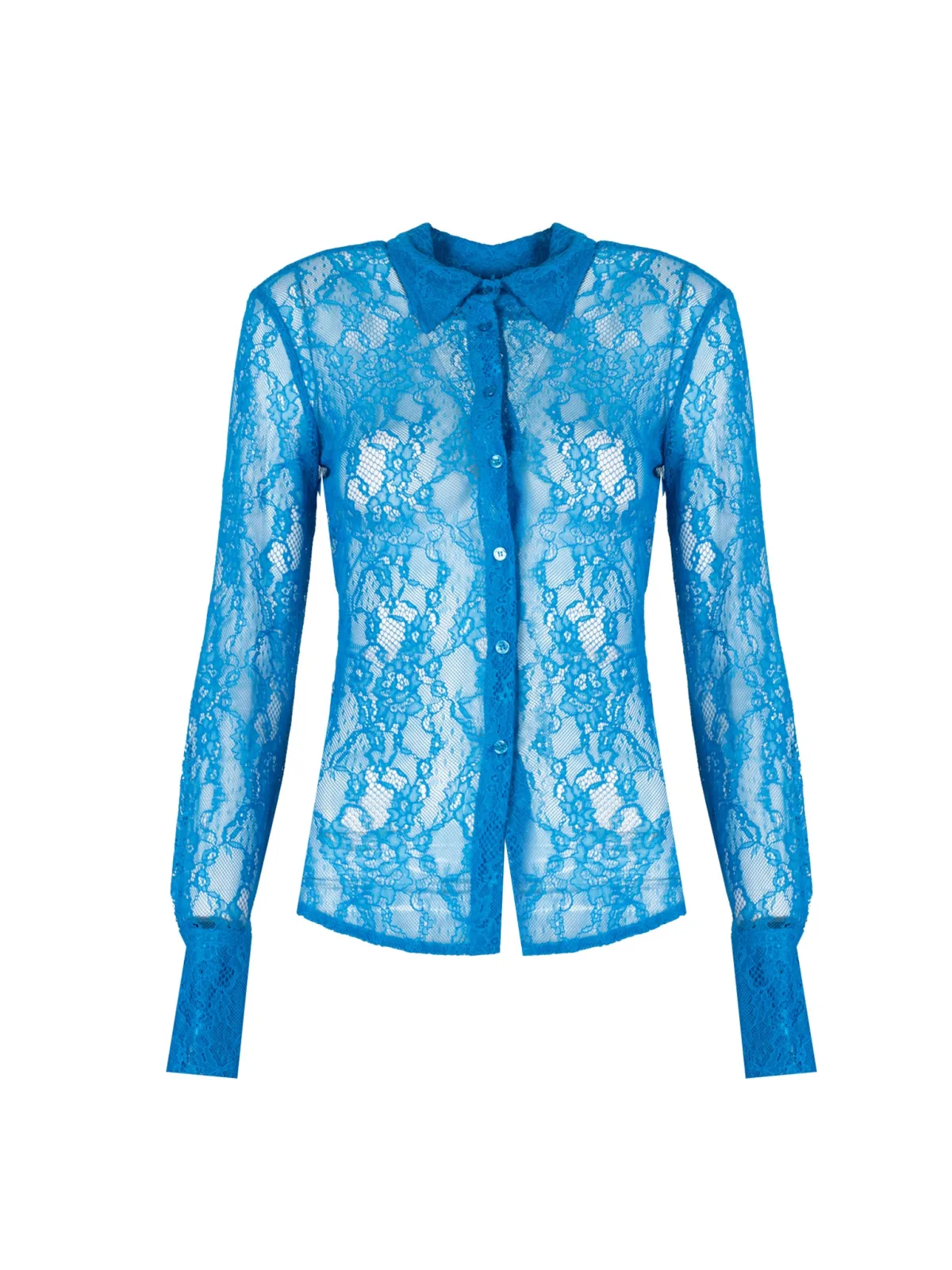 Deze elegante stijl benadrukt je figuur en biedt comfort en een uitstekende pasvorm voor verschillende lichaamstypes. Het subtiele maar duidelijke logo op de knopen geeft een exclusief karakter en is een discrete herkenning van het merk. Delicaat kant voegt een romantische en vrouwelijke charme toe, waardoor het perfect is voor speciale gelegenheden. De klassieke kraag maakt hem universeel en geschikt voor zowel een formele als casual styling. De manchetten geven de mouwen een elegante look en je kunt de lengte gemakkelijk aanpassen aan je voorkeuren. De asymmetrische snit met een langere voorkant creëert een modern silhouet en voegt originaliteit toe terwijl het eventuele onvolkomenheden in de buikstreek verbergt. De stof waarvan het gemaakt is, biedt niet alleen een luxueuze uitstraling, maar ook duurzaamheid en onderhoudsgemak, waardoor het je gegarandeerd vele seizoenen van dienst zal zijn. Met trots presenteren we een product dat Italiaanse precisie in afwerking en ontwerp combineert, waardoor het synoniem is voor de hoogste kwaliteit en stijl.