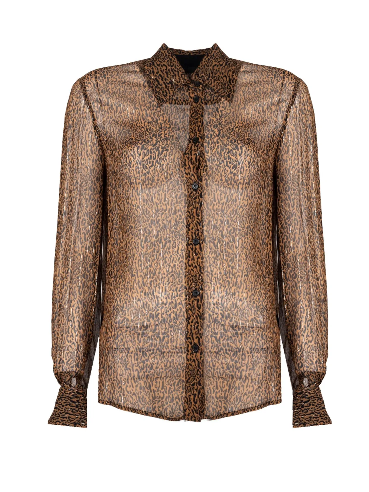 Eenvoudige snit Kan worden vastgemaakt met knopen Transparant Met kraag Met lange mouwen Manchetten kunnen vastgemaakt worden met twee knopen Versierd met metallic draad Gemaakt van hoogwaardige stof met zijde