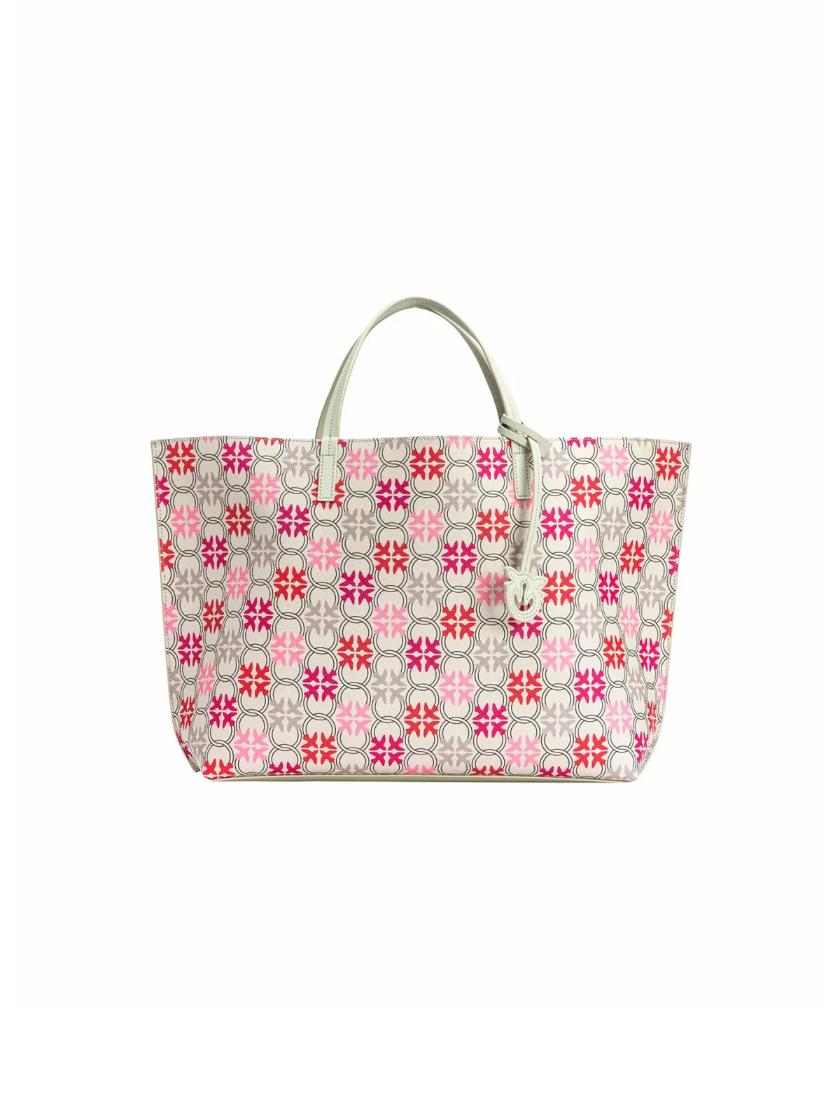 Grote Shopper Tas Met Liefdesvogels Monogramprint Overal. Handvatten Aangepast Met Logo-Gemarkeerde Charms En Leerachtige Binnenvoering. Activeer Je Pinko Tas: Verifieer De Authenticiteit Van Je Product En Krijg Toegang Tot Een Gepersonaliseerde Ervaring Door De Liefdesvogels Borduursel Op De Achterkant Van De Tas Te Scannen Met Je Smartphone! Afmetingen - 30x36x13 cm