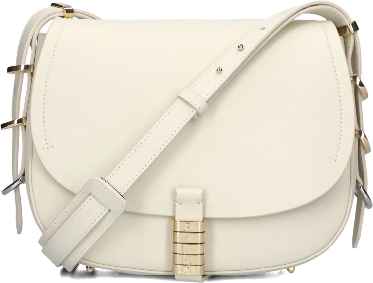 Pinko Schoudertas Dames Saddle Classic, Materiaal: Leer, Kleur: Gebroken wit