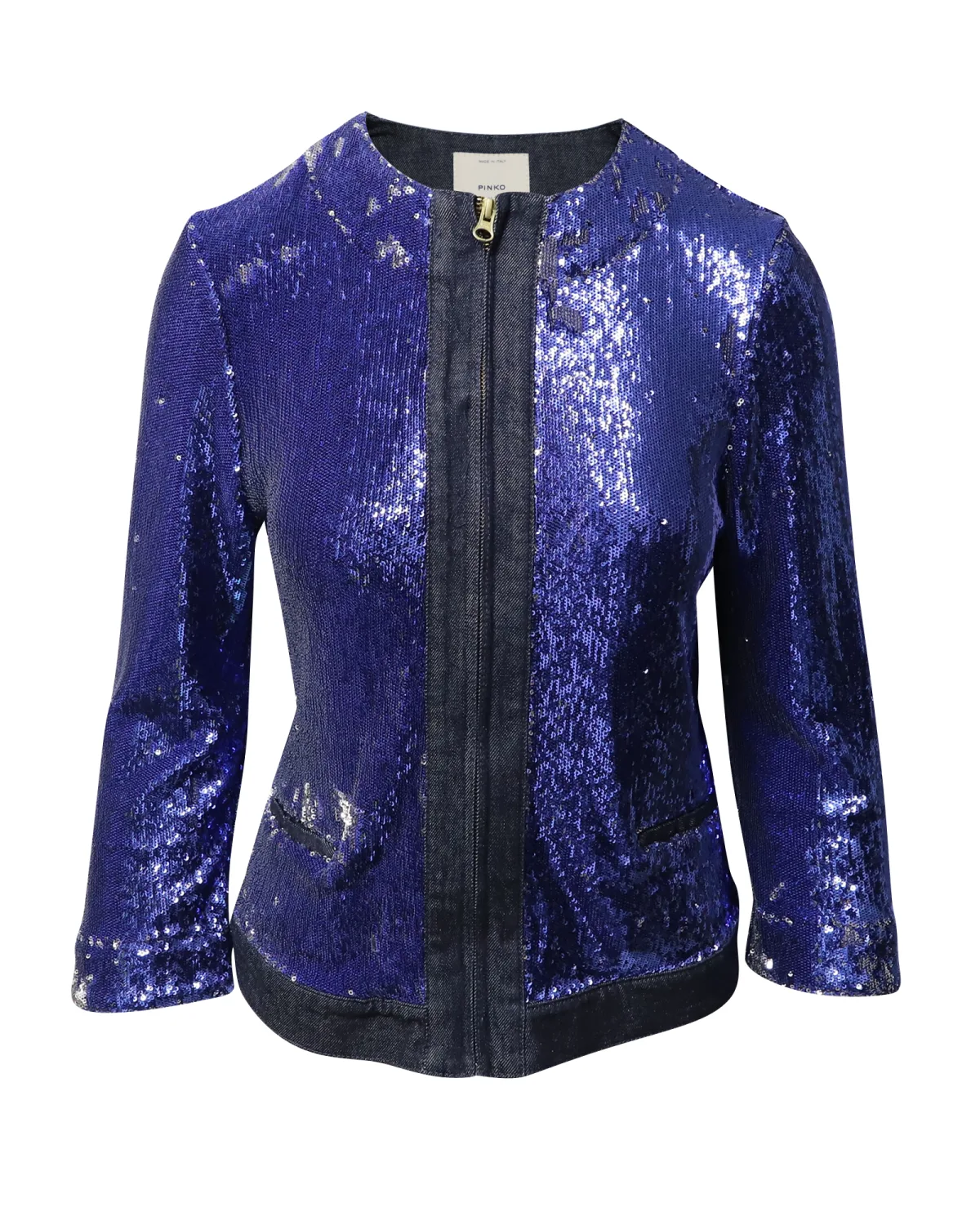 Pinko Tag Pailletten Versierde Jas in Blauwe Denim