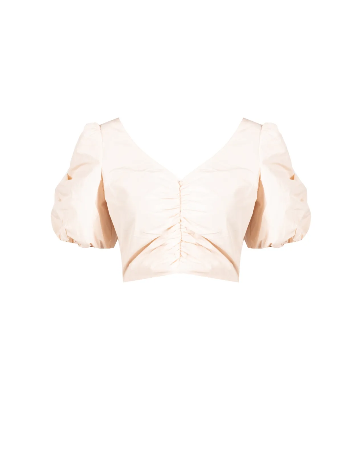 De aansluitende snit benadrukt het silhouet en geeft het een elegante en vrouwelijke look, ideaal voor belangrijke vergaderingen en elegante recepties. De V-hals accentueert discreet de nek en sleutelbeenderen, voegt subtiele charme toe en biedt een geweldige achtergrond voor favoriete kettingen of hangers. De pofmouwen zijn niet alleen een modehoogtepunt, maar garanderen ook bewegingsvrijheid en geven elke styling een vleugje romantiek. Een decoratieve plooi aan de voorkant zorgt voor een uniek detail dat de aandacht trekt en originaliteit toevoegt terwijl het eventuele onvolkomenheden in het figuur verbergt. Gemaakt van hoogwaardige stof, biedt het de hele dag comfort en de duurzaamheid zorgt ervoor dat het er als nieuw uitziet, zelfs na vele wasbeurten.