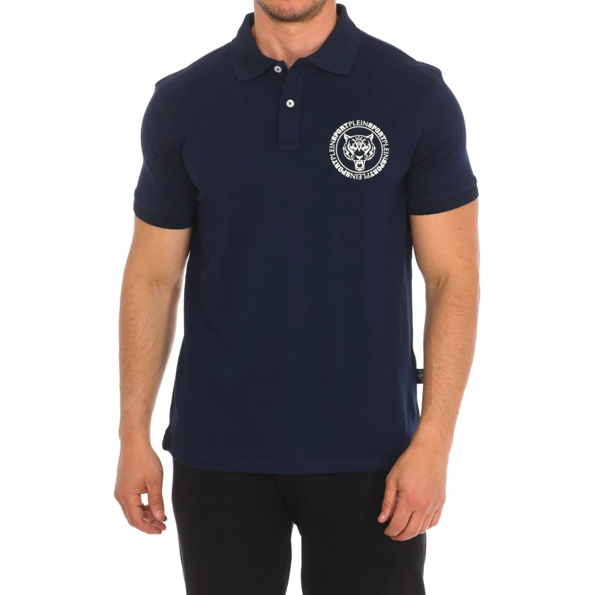 Korte mouwen polo Plein Sport. Lapel kraag Halve knoopsluiting. Korte mouwen met ribbelafwerking. Merkprint op de voorkant. Merkbadge op de achterkant. Zomen in dezelfde kleur. Samenstelling: 95% Katoen, 5% Elastaan Verzorging: Wassen op maximaal 30º. Strijken op lage temperatuur. Niet in de droger gebruiken. Niet bleken. Niet chemisch reinigen.