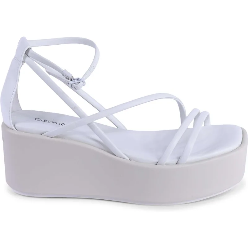 Stap naar buiten, verheffend, straal. Deze Calvin Klein platform wedge sandalen zijn jouw ultieme zomerse must-have, waarbij moeiteloze stijl samenkomt met ultiem comfort. Gemaakt van premium wit leer, zorgt het chique multiriem ontwerp voor een veilige, stijlvolle pasvorm, waardoor ze een veelzijdige toevoeging zijn aan elke garderobe. Ervaar de technologie voor comfort gedurende de hele dag dankzij de ondersteunende platform wedge hak, perfect om zowel casual uitjes als meer formele evenementen met gemak te navigeren. Integreer deze prachtige sandalen in jouw levensstijl voor een onmiddellijk verheven look die naadloos overgaat van zonovergoten dagen naar elegante avonden.