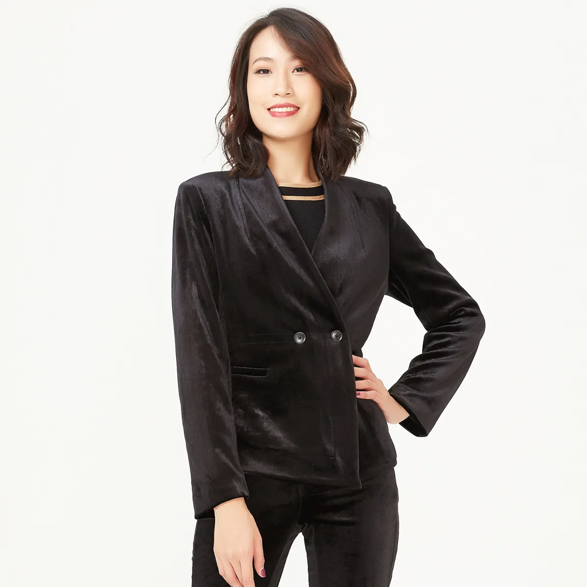 Platte nek fluwelen jas