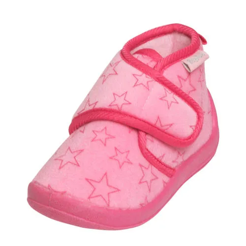 Playshoes pantoffels met sterrendessin Velcro roze/donkerroze