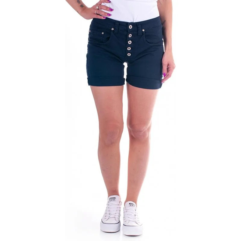 Het bekende shortje van Please mag ook dit seizoen niet ontbreken. Model P88, bekend om de knoopsluiting. 98% katoen 2% elastene Normale pasvorm. Donkerblauw van kleur.