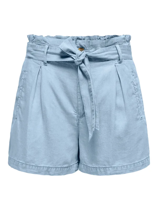 Pleated Denim Shorts with Tie Belt Wo – Light Blue