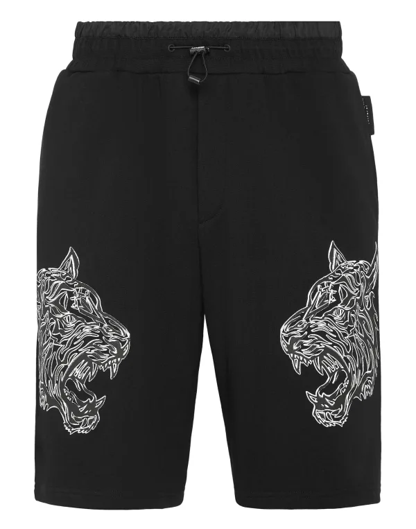 These jogging shorts are the perfect match to achieve your goals. Comfort and performance add up to the style of Plein Sport. Stretch cotton fleece Rib-knit waistband with drawstring Tiger prints on both legs Two slit pockets