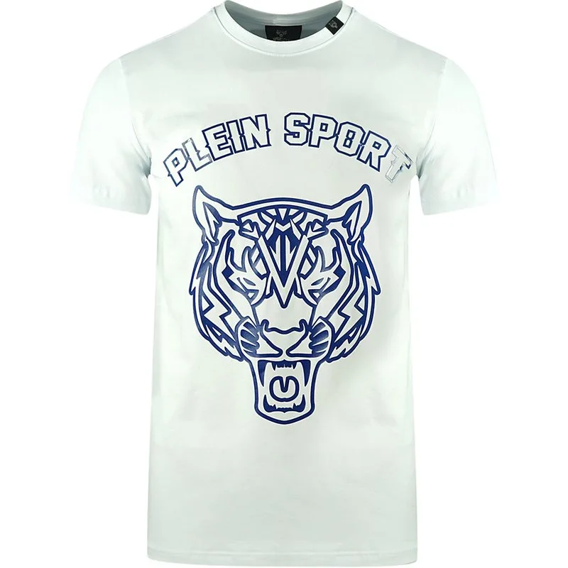 Plein Sport Large Stencil Tiger Logo White T-Shirt. A perfect blend of Italian style, comfort, and streetwear, the Plein Sport Stencil Tiger Logo White T-Shirt is sure to make a statement. Show your unique sense of style with this classic casual tee made exclusively in Italy for a look and feel you can't find anywhere else. Let your style roar!. Stretch Fit 95% Cotton, 5% Elastane, Plein Sport White T-Shirt. Made In Italy. Plein Branded Badges. Style Code: TIPS113IT 01