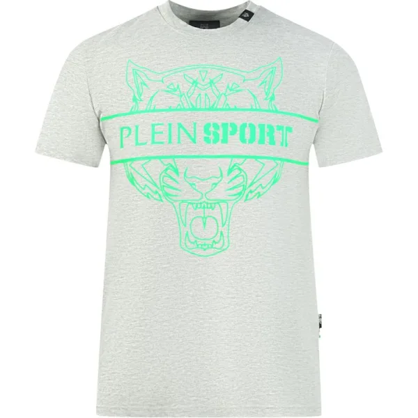 Plein Sport Tigerhead Bold Logo Grey T-Shirt. This Plein Sport Tigerhead Bold Logo Grey T-Shirt is perfect for sports or casual wear. Crafted from soft, lightweight fabric, this classic grey tee will keep you comfortable and stylish. Whether you�re heading to the gym or out with friends, it�s a versatile and reliable option!. Stretch Fit 95% Cotton, 5% Elastane, Plein Sport Grey Tee. Plein Sport Branded Logo, Crew Neck, Short Sleeves. Plein Branded Logo, Made In Italy. Style Code: TIPS112IT 94