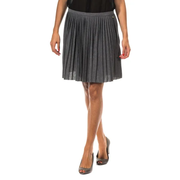 Geplooide rok. Kleur donkergrijs. Ritssluiting aan de zijkant. Op maat gemaakte metalen applicatie bij het merk, op de bovenkant van de voorkant. Gestikte naden. Samenstelling: - 65% Polyester. - 35% viscose. Wasvoorschriften: - Maximaal wassen op 40ºC. - Strijken op gemiddelde temperatuur, max. 110 ° C. - Mag in de droger. - Geen bleekmiddel gebruiken. - Chemisch reinigen niet toegestaan. Samenstelling: 65% polyester, 35% viscose Onderhoud: - Wassen op maximaal 40ºC. - Strijken op gemiddelde temperatuur, max. 110ºC. - Je kunt een droger gebruiken. - Geen bleekmiddel gebruiken. - Kan niet chemisch gereinigd worden.