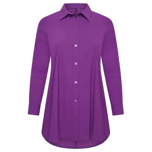 Deze paarse blouse met lange mouwen van Plus Basics is een rustige basis voor je garderobe. De effen kleur in een diepe paarstint geeft direct een verzorgde uitstraling, terwijl de rechte pasvorm luchtig valt rond het lichaam. De gladde stretchstof voelt soepel aan en beweegt makkelijk met je mee, fijn voor een lange werkdag of een etentje in de stad.Details die het verschil maken Geschikt voor grote maten, met een rechtvallend model dat comfortabel rondom heupen en buik zit Lange rechte mouwen voor extra bedekking en een nette uitstraling Klassieke kraag en doorlopende knoopsluiting aan de voorkant Effen paarse kleur, makkelijk te combineren met basic broeken en rokken Zonder zakken voor een rustige, gestroomlijnde look Soepel materiaal met stretch dat prettig aanvoelt op de huid Onderdeel van de Feminine collectie, ideaal voor het zomerseizoenVeelzijdig in dagelijkse outfitsDeze blouse draag je net zo makkelijk naar kantoor als in je vrije tijd. Combineer met een donkere broek voor een zakelijke look of met een lichte jeans voor een meer casual dag. De knoopsluiting geeft de keuze om de blouse gesloten te dragen of los over een top.Plus Basics voor dagelijks gemakPlus Basics richt zich op comfortabele mode in grote maten met een rustige, moderne stijl. De modellen zijn doordacht ontworpen zodat ze prettig zitten en mooi vallen, dag na dag. Zo kun je vertrouwen op kleding die je eenvoudig combineert en vaak uit de kast pakt.Deze blouse is geschikt voor momenten waarop je zonder moeite verzorgd voor de dag wilt komen.