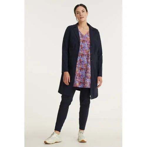Plus Basics tapered fit broek van travelstof donkerblauw