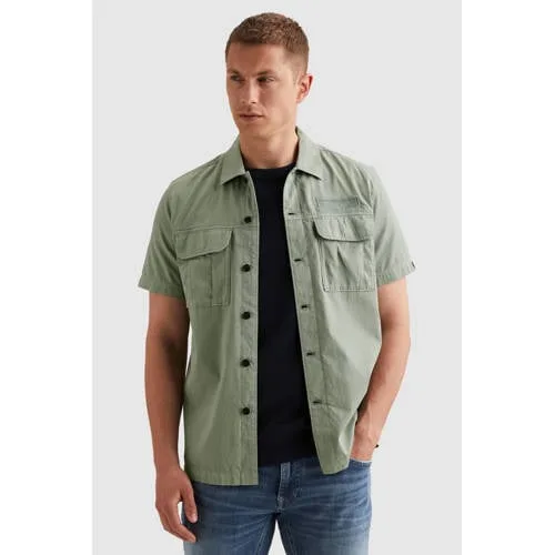 Dit PME Legend heren overhemd met korte mouw in iceberg green is een frisse basic voor elke dag, met de stoere signatuur die je van het merk gewend bent. De effen groene kleur oogt rustig en modern, terwijl de subtiele patches en borstzakken zorgen voor een casual utility-look. Gemaakt van 100% katoen voelt het overhemd prettig aan op de huid en blijft het de hele dag comfortabel.Dagelijks draaggemak met stoere details Gemaakt van 100% katoen voor een ademende en zachte touch Korte mouwen, ideaal voor warme dagen of onder een licht jack Regular fit pasvorm voor voldoende bewegingsvrijheid Klassieke kraag en knoopsluiting voor een nette, tijdloze uitstraling Borstzakken en patches geven een casual, stoer karakter Effen ontwerp in de kleur iceberg green, makkelijk te combinerenCasuallook voor elke dagDit overhemd komt goed tot zijn recht in je dagelijkse garderobe. Combineer het met een jeans en sneakers voor een relaxte outfit, of draag het met een chino voor een wat meer verzorgde look. De korte mouwen maken het een fijne keuze op warme dagen en in het tussenseizoen.PME Legend, geïnspireerd op de cargo lifestylePME Legend staat bekend om kleding die geïnspireerd is op de wereld van cargo piloten, met aandacht voor draagcomfort en stoere details. De overhemden en T-shirts uit de dagelijkse collectie sluiten aan bij een actieve levensstijl en zijn ontworpen om vaak te dragen.Een veelzijdig overhemd dat moeiteloos past in een moderne, casual garderobe.