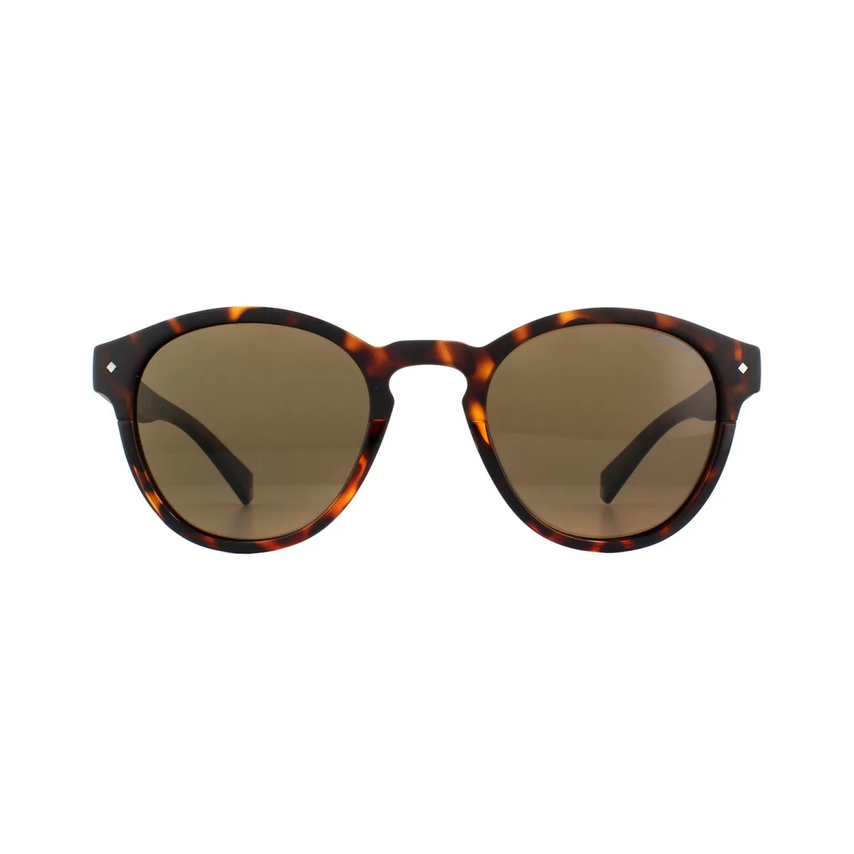 Polaroid zonnebril 6042 / S 086 SP Donkere Havana Bronze gepolariseerd hebben een ronde stijlframe met een sleutelgatbrug. Het polycarbonaat-frame heeft de iconische details van het merk, zoals zilveren klinknagels op het frame-voor- en pixels aan de binnenkant van de Temple-tip.