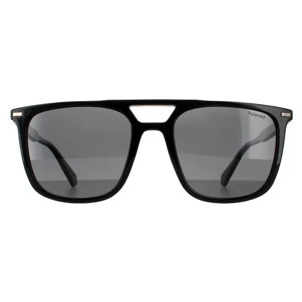 Polaroid zonnebrillen PLD 4123/s 807 M9 Zwart grijs gepolariseerd zijn een mannelijke rechthoekige stijl vervaardigd van lichtgewicht plastic met een dubbele brug en polaroid branding op de slanke tempels.
