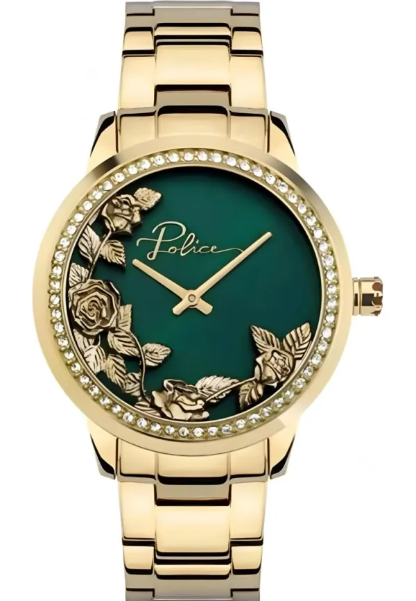 Police Dameshorloge Kwarts Goud• Materiaal kastdeksel: Roestvrij staal• Soort glas: Mineraal• Materiaal Band: Roestvrij Staal• Kleur kast: Goud• Waterdichtheid: 0 m (0 ATM)• Diameter: 34 mm