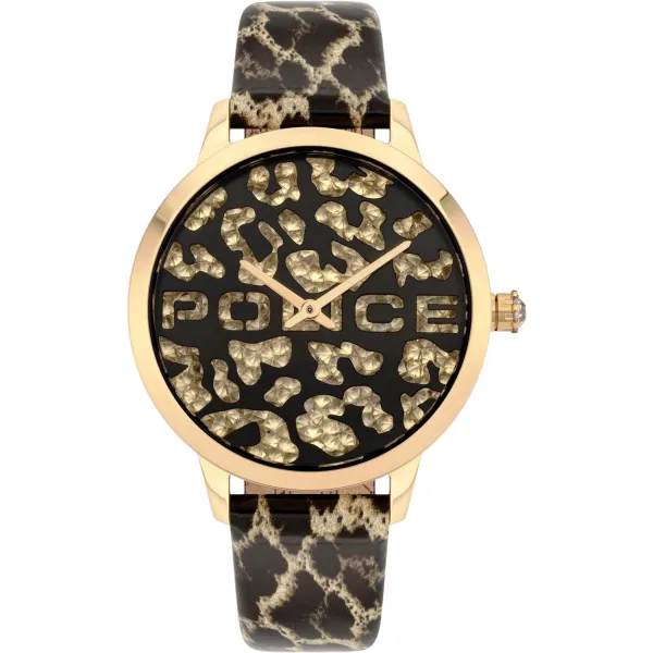 Police Dameshorloge Kwarts Goud• Materiaal kastdeksel: Roestvrij staal• Soort glas: Mineraal• Materiaal Band: Leer• Kleur kast: Goud• Waterdichtheid: 0 m (0 ATM)• Diameter: 36 mm