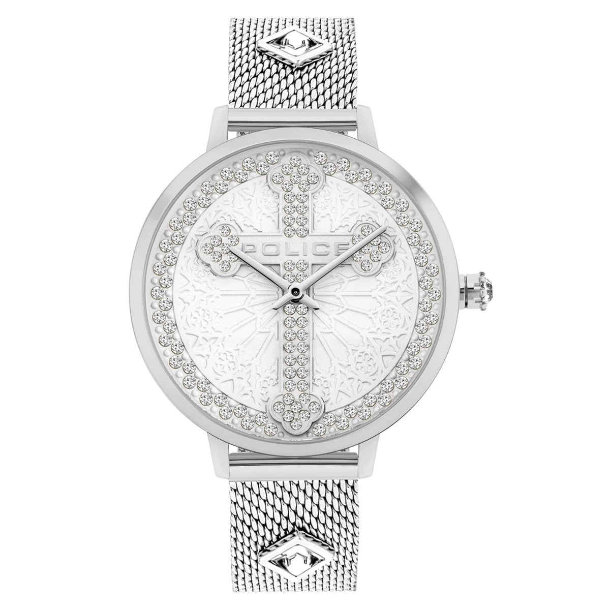 Police Watch PL.16031MS/04MMA Uurwerk: Quartz Weergaveformaat: Analog Waterbestendig: 5 ATM Sluiting: Vouwsluiting Functies: Geen extra functie Behuizing kleur: Zilver Behuizing materiaal: Stainless Steel Kast breedte: 36 Behuizing lengte: 36 Kous: Strass Armband kleur: Zilver Armband materiaal: Stainless Steel Nok breedte: 13 Pols omtrek: 190 Leveringsomvang: Horloge doos Stijl: Mode Kast hoogte: 8 Glas: mineraal glas Wijzerplaat: Zilver Omlijsting: Geen Extras: Geen