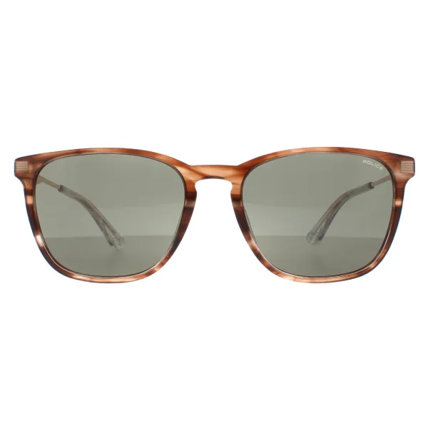 Police SPLD47 Code 4 09N3 glanzend gestreepte bruingroene zonnebril heeft een duurzaam en lichtgewicht montuur van hoogwaardig acetaat. Het moderne vierkante ontwerp, maakt ze het perfecte accessoire voor elke outfit. Het logo van Police staat op de slanke veren voor de authenticiteit van het merk.
