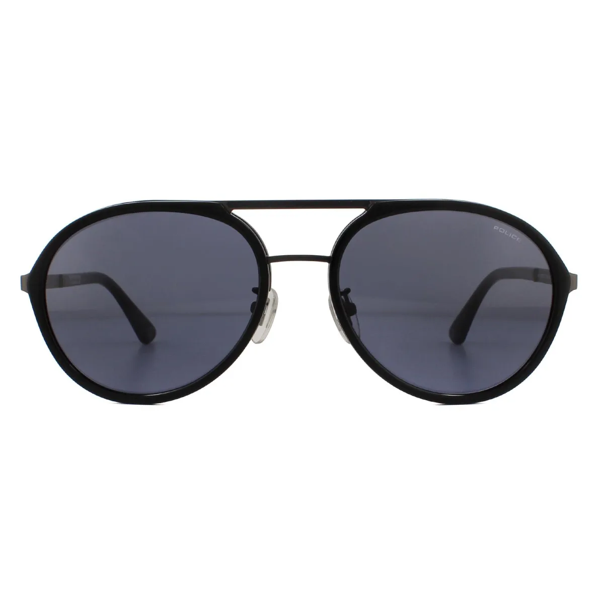 Politie zonnebril SPLA57 Record 2 0627 Matte Gunmetal Gray zijn een eigentijdse kijk op de vliegerstijl met gegroefde brug, bovenste wenkbrauwstang en verstelbare neuskussens die een comfortabele pasvorm mogelijk maken. De politiemerking is verfraaid op de slanke tempels voor een stijlvolle look.