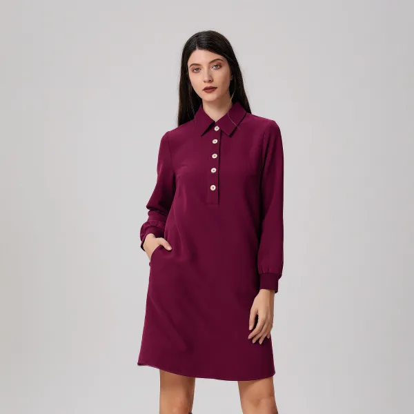Een casual en elegant kledingstuk met structuur, een polokraag met knoop middenvoor en lange mouwen die met een geribbelde rand aan de polsen zijn vastgemaakt. Licht uitlopend volume van gemakkelijk te strijken materiaal. Geschikt voor semi-formele gelegenheden in de stad, op kantoor of meer informele uitjes. Te combineren met maillots en enkellaarsjes tijdens de koudste periodes van de herfst-winter. Productdetails: Vorm: recht/trapezium Lengte: 97 cm Polokraag Lange mouwen Knoopsluiting middenvoor