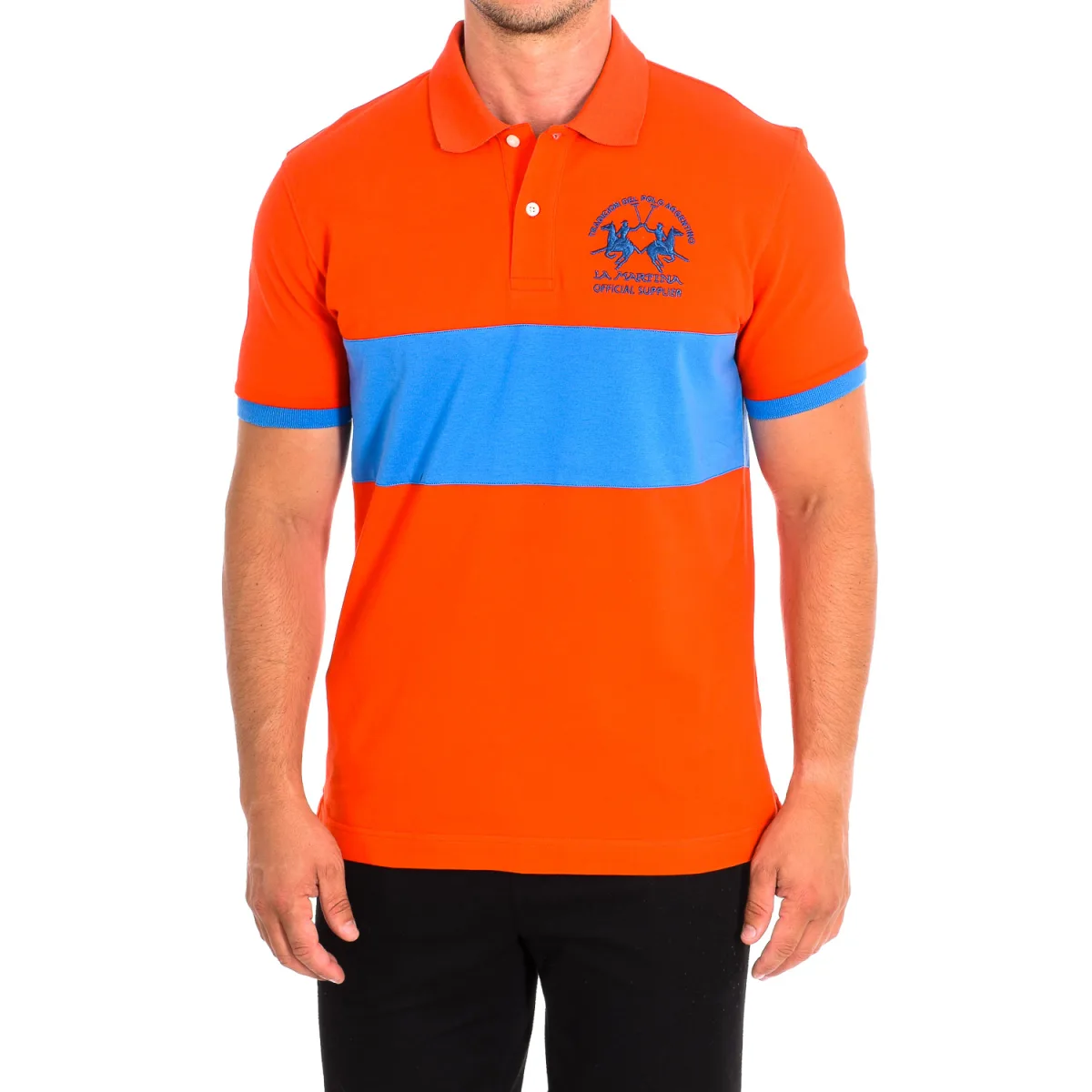 Polo met korte mouwen La Martina. Kleur Oranje-blauw Ideaal om een casual en moderne look af te maken. Contrasterende reverskraag. Middelgrote knoopsluiting aan de voorkant. Rug graphics met merkmotieven. Geborduurd logo op de voorkant. Naden in toon zichtbaar. Samenstelling: 100% katoen. - Maximaal wassen op 30ºC. - Strijken op gemiddelde temperatuur, max. 110ºC. - Het gebruik van een droger is niet toegestaan. - Niet bleken. - Mag niet chemisch gereinigd worden. Samenstelling: 100% katoen. Onderhoud: - Maximaal wassen op 30ºC. - Strijken op gemiddelde temperatuur, max. 110ºC. - Droger is niet toegestaan. - Geen bleekmiddel gebruiken. - Kan niet chemisch gereinigd worden.