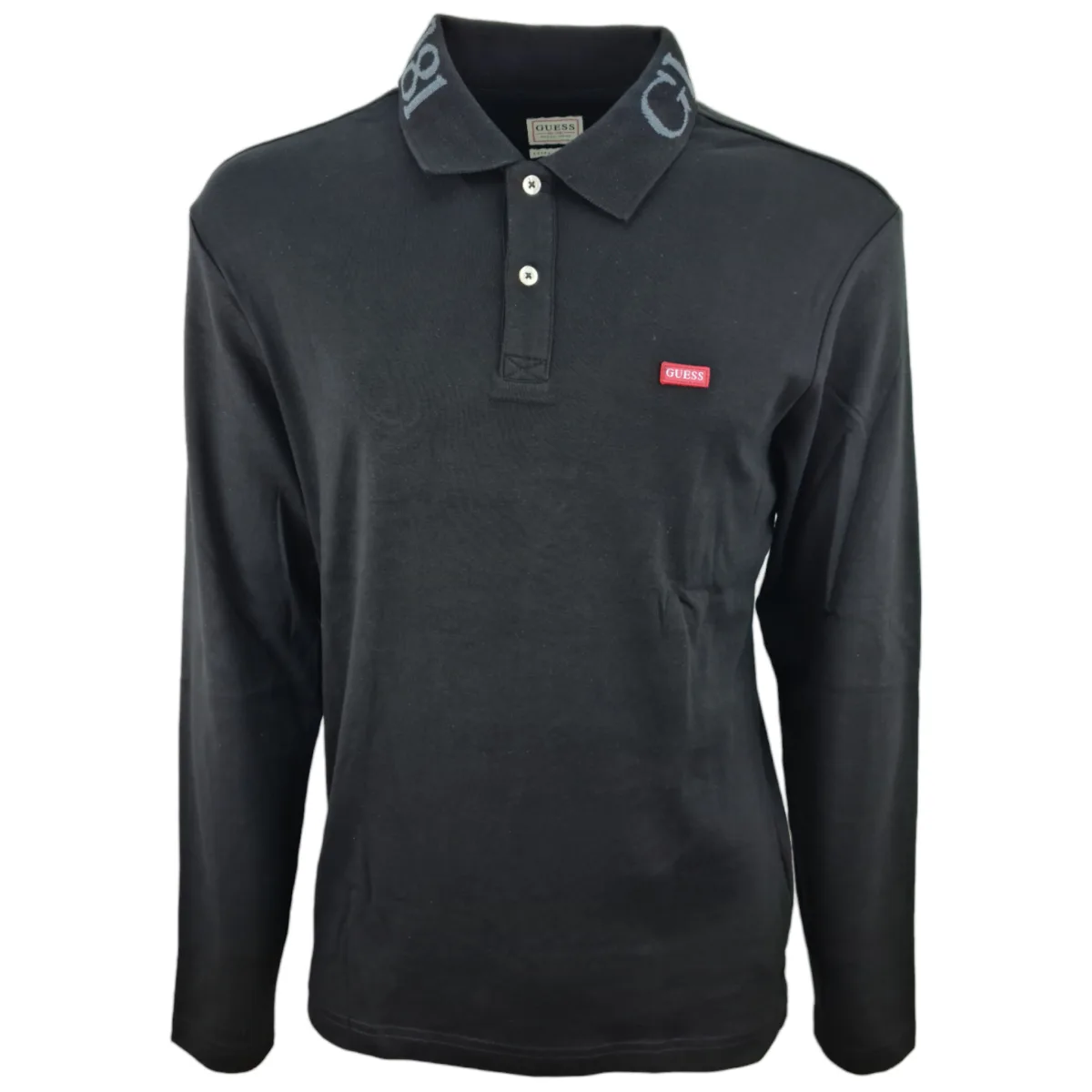 Guess Poloshirt ML Super Heren Zwart Katoen. Authentiek Guess-kledingstuk - streetwear/sportswear design van Guess - Guess voor heren, modieus en perfect voor dagelijks gebruik - het zwarte Guess poloshirt combineert perfect met de rest van je garderobe - comfortabele katoenkwaliteit - klassiek - ML Super -