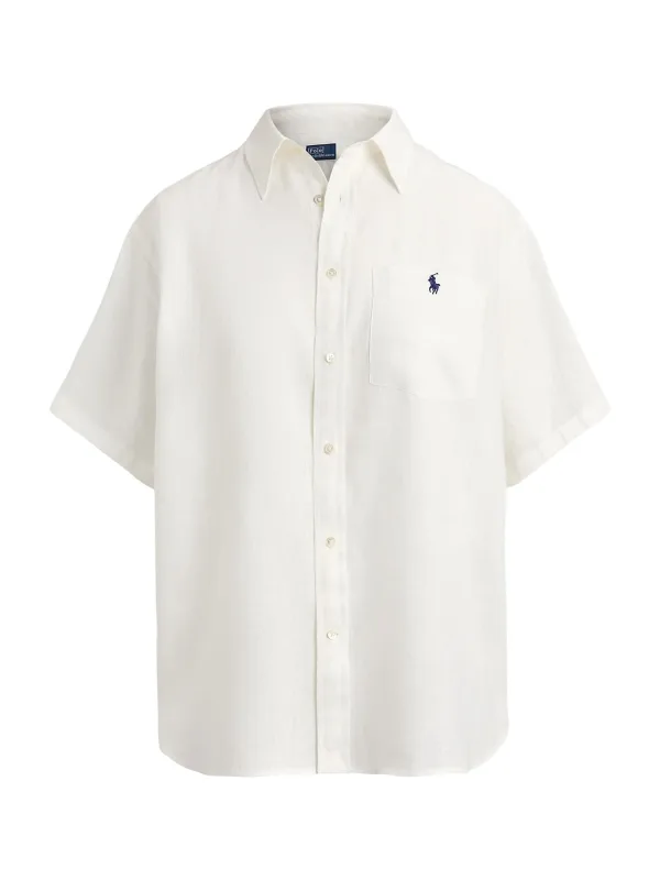 Dames overhemdblouse van Polo Ralph Lauren;Look: effen;Pasvorm: Oversized;Kraagmodel: Overhemdkraag;Applicatie: Gestikt logo;Details: Rugpas met locker loop;Mouwvorm: korte mouw;Rompzoom: met zijsplitten, licht afgerond;Zakken: Borstzak;Materiaal: puur linnen