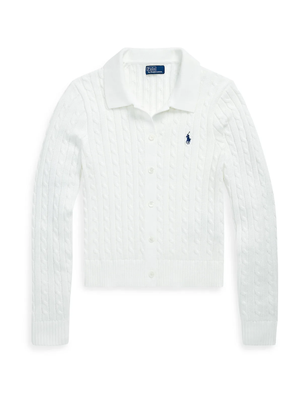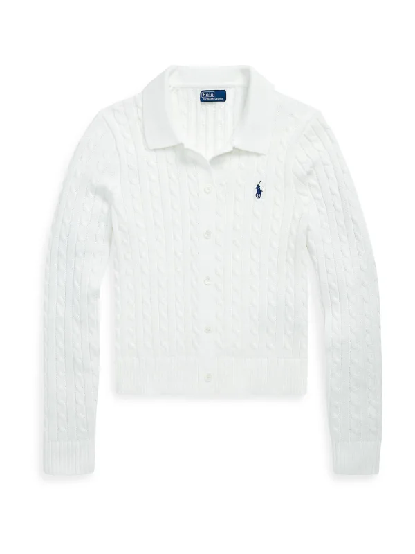 Gebreid jack van Polo Ralph Lauren voor dames;Look: effen;Pasvorm: Slim fit;Sluiting: enkele knoopsluiting;Motief: Kabelpatroon;Applicatie: Gestikt logo;Kraagmodel: Overhemdkraag;Mouwvorm: lange mouwen;Mouwboord: geribd;Rompzoom: geribd;Materiaalverwerking: Knitwear;Materiaal: puur katoen